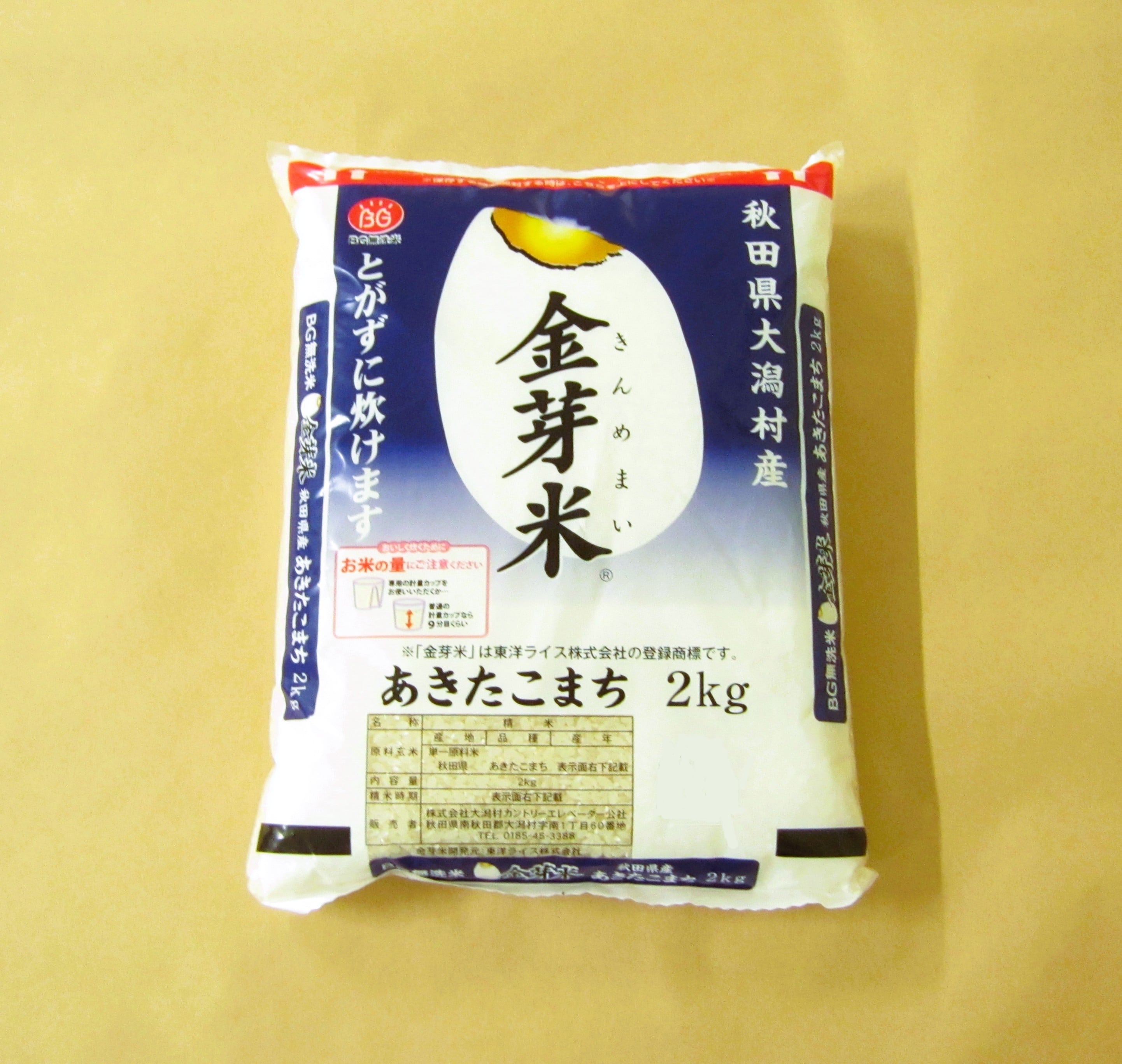 あきたこまち金芽米(無洗米)2kg 大潟村カントリーエレベーター公社